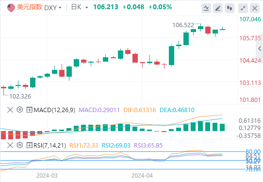 随着美联储官员继续打压市场的降息预期,美元指数盘中转涨,收复106关口,最终收涨0.211%,报106.17。美债收益率回升。在“美联储三把手”提及加息可能性后,10年期美债收益率冲高,最终收报4.643%。截至目前,美元报价106.213。