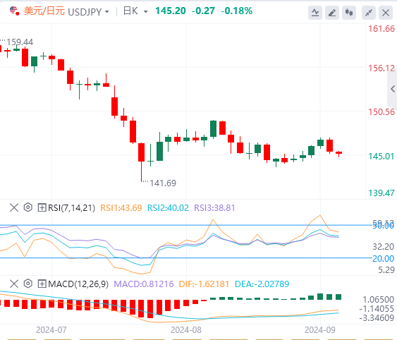 美元/日元周二转跌,结束了连续四天的上涨。该货币对周三早盘仍处于看跌压力之下,交投于145.00附近。