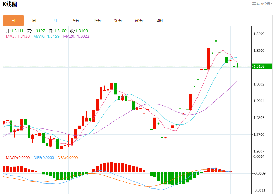 英镑/美元:截止北京时间20:26,英镑/美元下跌,现报1.3110,跌幅0.03%。纽市盘前,GBPUSD价格现在正在测试1.3124美元水平,EMA50遇到该水平以增加更多力量,等待恢复今天的预期看跌趋势,目标主要是1.3036美元。