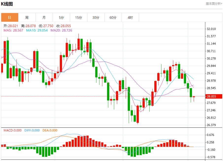 现货白银:截止北京时间20:26,现货白银上涨,现报28.055,涨幅0.11%。纽市盘前,白银价格显示新的负面交易试图再次接近27.62美元水平,等待更多的下跌来打破这一水平,并为延长熊市波打开道路,以实现新的负面目标,达到27.15美元。