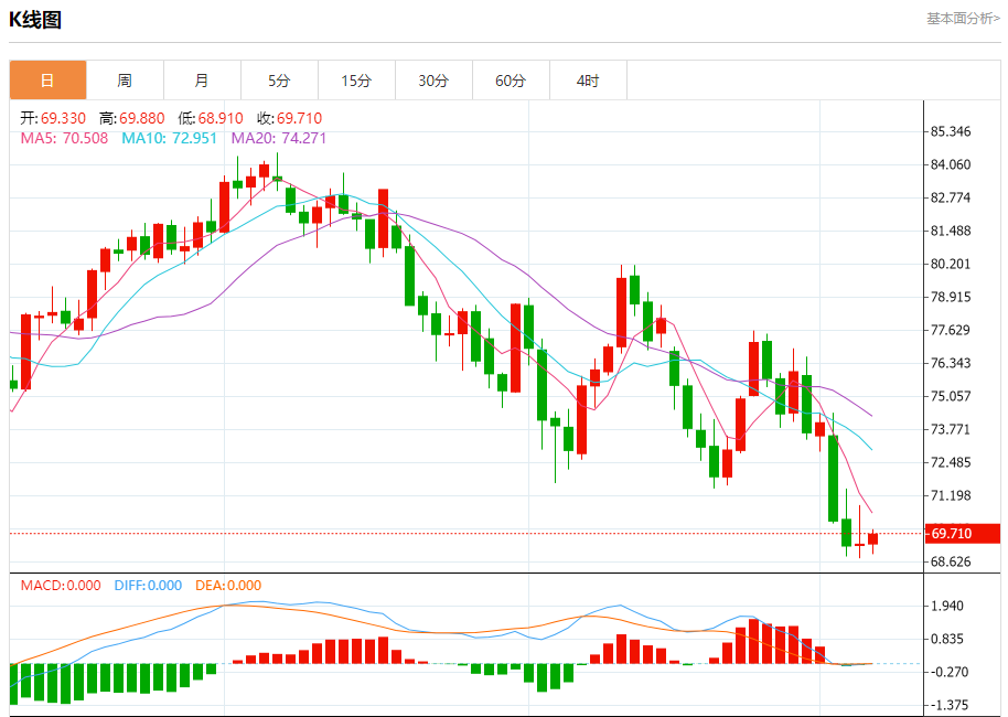 原油市场:截止北京时间20:25,美油上涨,现报69.720,涨幅0.84%。纽市盘前,原油价格自上午以来一直横盘整理,并在70.00美元关口下方盘整,以保持今天的负面情景占主导地位,等待突破69.05美元,为我们走向下一个目标67.65美元开辟道路。