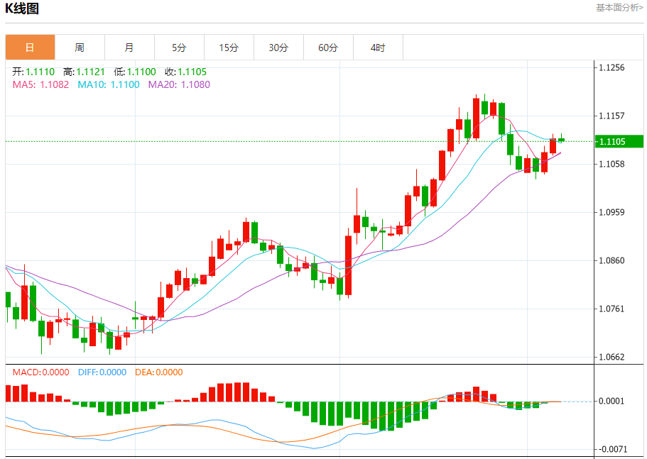 欧元/美元:截止北京时间20:25,欧元/美元下跌,现报1.1106,跌幅0.04%。纽市盘前,欧元兑美元价格平静地向上攀升,试图离开1.1100美元水平,以保持今天的看涨趋势,等待收集积极的动力,以加强实现我们从1.1200美元区域开始的目标的机会。