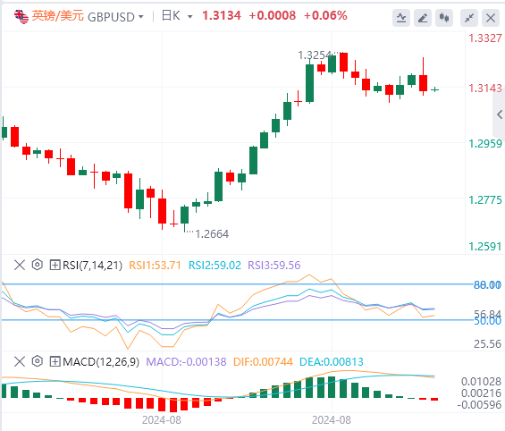 英镑:截止发稿,英镑/美元徘徊于1.3134附近。英镑/美元上周一下跌,收报1.3126,跌幅0.39%。由于美元持续看跌,英镑/美元扭转了前一周的下跌趋势。在美联储(Fed)重新积极推行宽松政策的背景下,美元仍然承压,其中包括在9月18日的会议上可能降息50个基点。技术面上,跌破支撑位1.3120–1.3140将推动英镑/美元跌至下一个支撑位1.3025–1.3045。