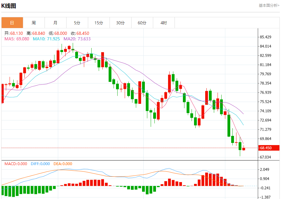 原油市场:截止北京时间20:25,美油上涨,现报68.480,涨幅1.18%。纽市盘前,原油价格自上午以来表现疲软,等待突破68.00美元支撑或突破69.75美元阻力,以明确检测下一个目的地,这使我们继续保持中立直到现在。