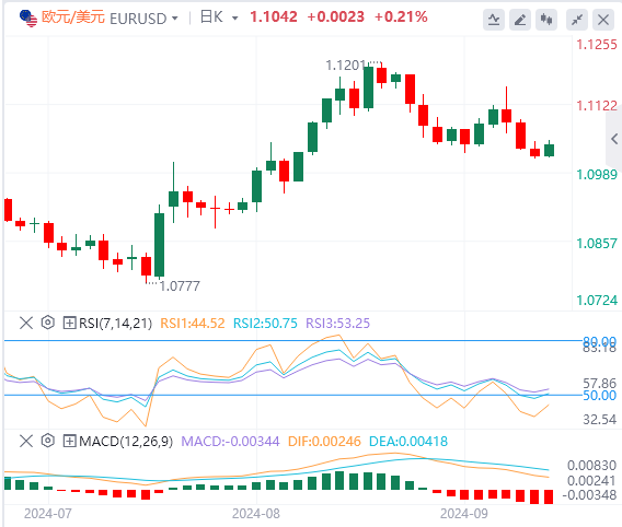 在连续三个交易日收于负值区域后,欧元/美元在欧洲早盘出现反弹,最后一次交易于1.1050附近。