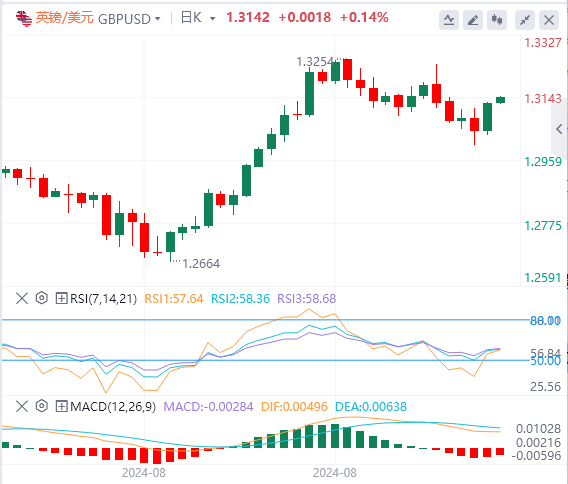 英镑:截止发稿,英镑/美元徘徊于1.3142附近。英镑/美元周四上涨,收报1.3124,涨幅0.62%。周五将仅提供英国方面的中等消费者通胀预期,而美国市场将关注9月份美国密歇根消费者信心指数的另一份数据。在下周即将到来的美联储加息电话会议之前,市场将寻求关键消费者前景调查的最后一次改善。技术面上,如果英镑/美元攀升至1.3100上方,它将朝着阻力位1.3120–1.3140前进。