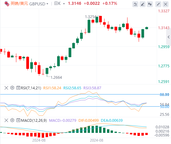 英镑/美元受益于风险情绪的改善和周四美元再次走软,上涨超过0.6%。该货币对保持相对平静,在欧洲早盘在1.3100上方的狭窄通道内交易。