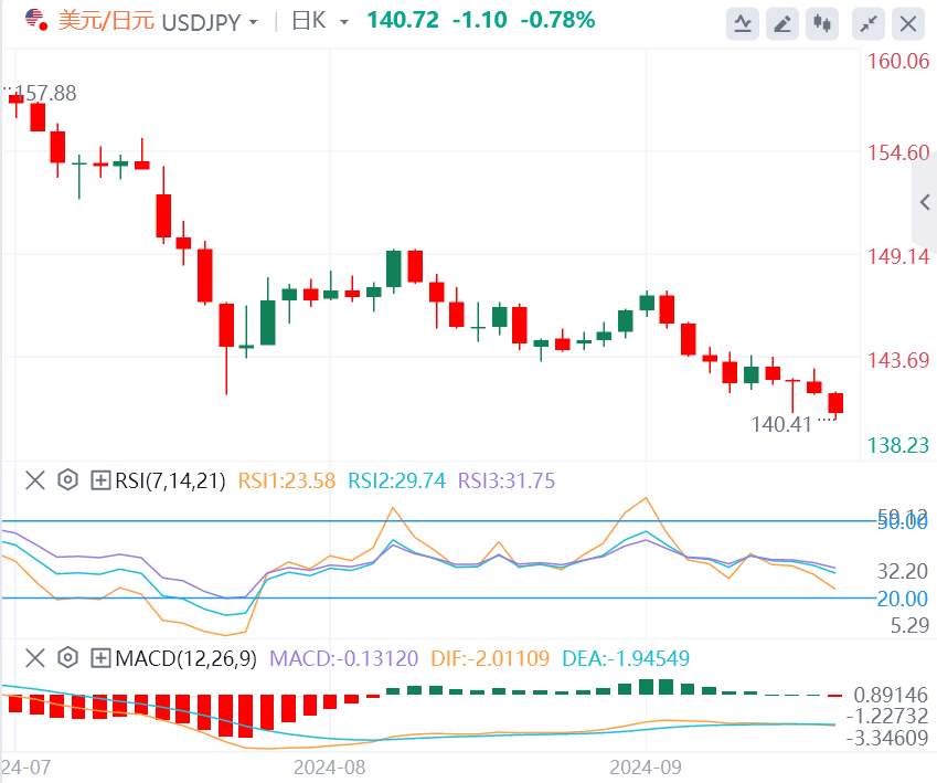 惠誉评级在其最新报告中表示,他们预计日本央行(BoJ)将在2024年底前将利率上调至0.5%,在2025年上调至0.75%,在2026年底前上调至1%。在周四收盘小幅走低后,美元/日元在欧洲早盘继续走低,当日最后一次下跌0.5%至141.10。