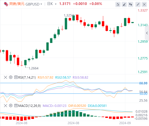 英镑:截止发稿,英镑/美元徘徊于1.3171附近。英镑/美元周二下跌,收报1.3161,跌幅0.42%。英国通胀数据将于周三早些时候公布,但非初步的通胀数据不太可能带来显着的推动力,因为这些数据几乎已得到完全定价。英国8月胀终值月率预计为0.3%,前值为收缩录得-0.2%;通胀年率预计为3.5%,高于前值3.3%。技术面上,如果欧元/美元回到1.1110下方,它将朝着50MA1.1072前进。RSI处于温和区域,因此短期内有足够的空间获得额外的动力。