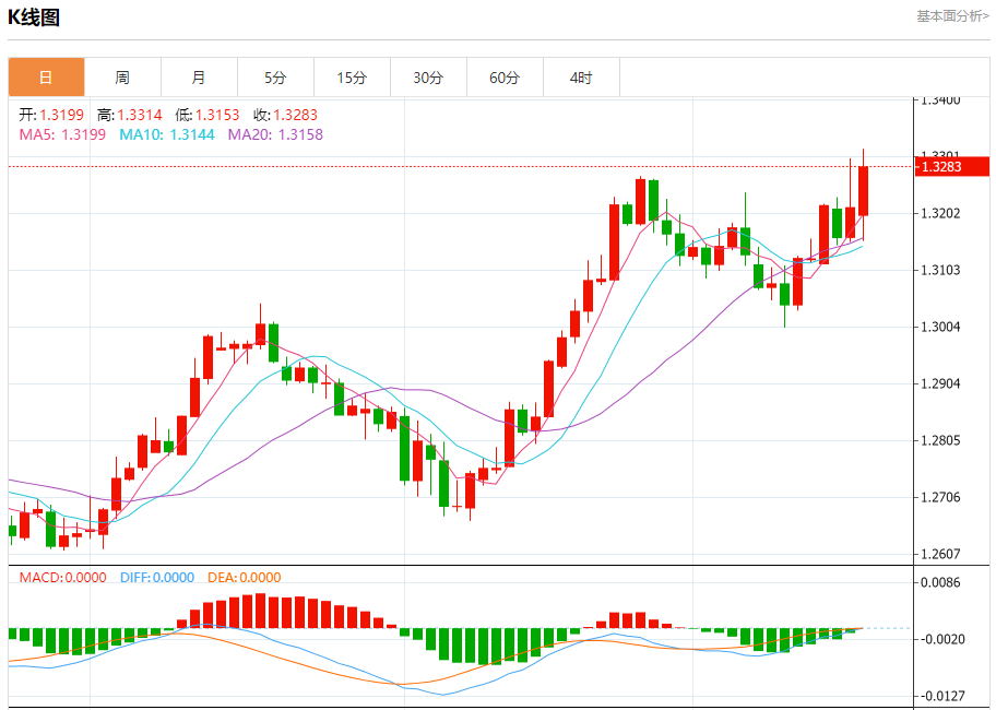 英镑/美元:截止北京时间20:21,英镑/美元上涨,现报1.3284,涨幅0.54%。纽市盘前,GBPUSD价格显示了额外的积极交易,现在达到1.3265美元的水平,等待突破这一水平,以确认向我们的下一个目标1.3325美元延伸牛市。