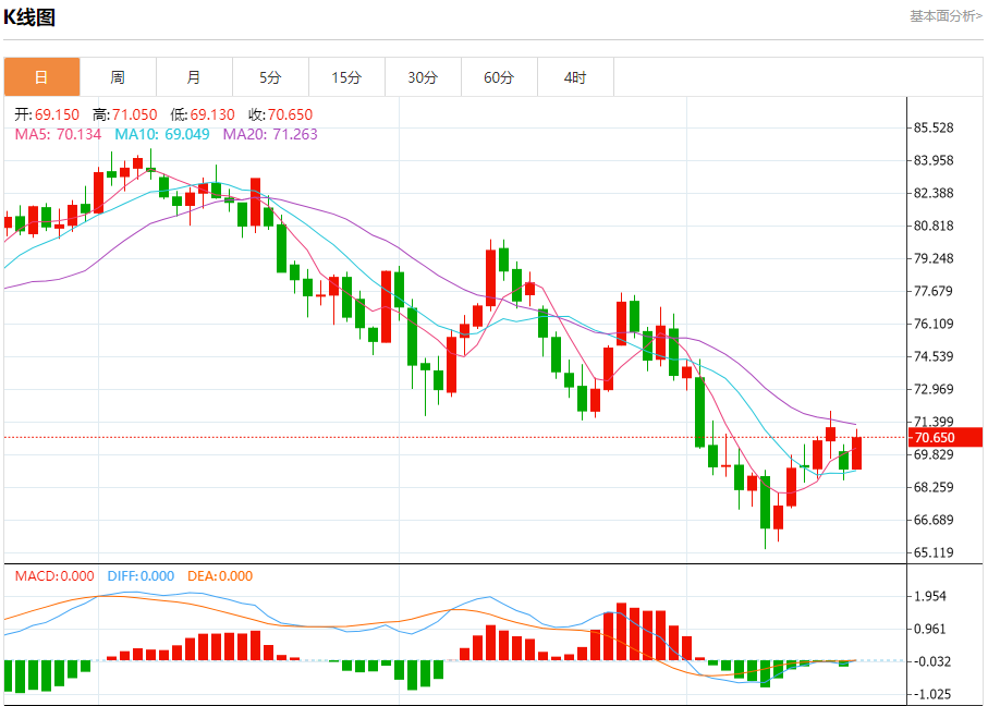 原油市场:截止北京时间20:21,美油上涨,现报70.620,涨幅1.07%。纽市盘前,原油价格成功实现了我们等待的目标71.95美元,并试图突破这一目标,加强了延长牛市修正以实现额外收益的预期,达到73.48美元,因为倒置头肩顶模式的积极影响仍然活跃。