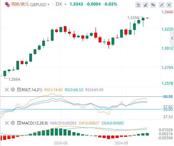英镑:截止发稿,英镑/美元徘徊于1.3343附近。英镑/美元上周一上涨,收报1.3347,涨幅0.19%。英镑/美元在新的交易周开始后又创下30个月高点,在广泛的美元抛售压力的支持下,英镑/美元进一步陷入牛市。上周,美联储在最后一刻大幅降息,导致美元流入疲软,推动英镑升至高端。周二市场将得到喘息的机会,英国方面几乎没有值得注意的数据。在美国经济日历上,这严格来说是一个中间表现,尽管投资者将密切关注美联储理事米歇尔·鲍曼(MichelleBowman)在美国市场时段的评论。技术面上,如果英镑/美元攀升至1.3350水平上方,它将朝着最近的阻力位1.3420–1.3440区间前进。