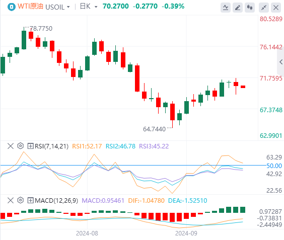 周二亚盘,原油交投于70.27附近。美联储上周大幅降息50个基点,帮助稳定了包括原油在内的风险资产,此后油价小幅走高。此外,飓风弗朗辛造成的美国原油供应暂时减少,为市场提供了支撑,尽管人们对需求减弱的担忧仍在继续。上周,布伦特原油和西德克萨斯中质原油(WTI)合约连续第二个月上涨。分析师表示,此次超出预期的降息在提振油价方面发挥了关键作用,因为它降低了借贷成本,并为更广泛的金融市场注入了信心。然而,由于市场参与者权衡其他经济指标,预计油价仍将维持区间波动。
