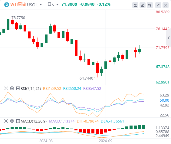 周三亚盘,原油交投于71.29附近。由于围绕中国刺激措施的积极发展和中东持续的地缘政治紧张局势,WTI价格小幅走高。由于中国是世界上最大的原油进口国,中国的其他刺激措施为WTI价格提供了一些支撑。中国人民银行(PBoC)公布了一系列广泛的货币刺激措施,以重振经济。“中国政府宣布了自大流行以来最大规模的刺激计划,再加上中东地缘政治紧张局势的突然加剧......对过去三周主导石油市场的看跌情绪造成了打击,“RystadEnergy全球市场分析总监ClaudioGalimberti表示。