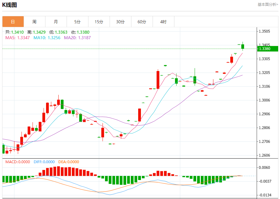 英镑/美元:截止北京时间20:28,英镑/美元下跌,现报1.3382,跌幅0.23%。纽市盘前,GBPUSD价格现在显示出一些看跌倾向,可能测试关键支撑1.3355美元,因为它受到RSI负值的影响,正如我们今天早上提到的,价格需要保持在此支撑之上,以保持今天的看涨趋势,因为打破它将迫使价格转向下跌,而价格需要超过1.3400美元的障碍,以确认走向1.3500美元,这代表着建议的看涨波的下一个目标。