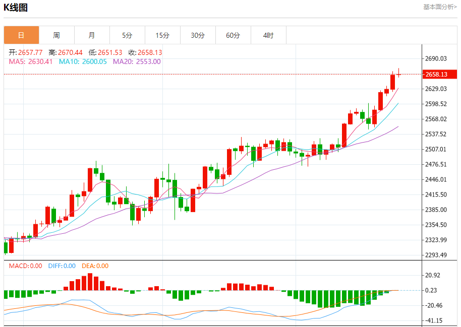 现货黄金:截止北京时间20:28,现货黄金上涨,现报2658.11,涨幅0.04%。纽市盘前,黄金价格显示出看跌倾向,以测试图表上出现的看涨通道的突破阻力,价格需要巩固在2647.00美元以上,以保持今天的看涨趋势,因为突破它将推动价格在盘中开始看跌波。