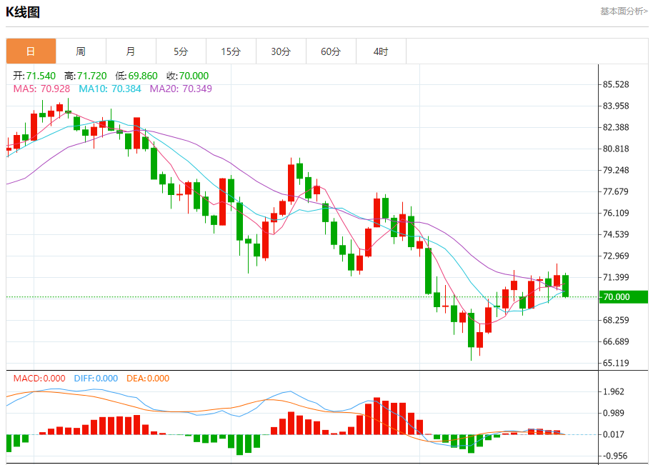 原油市场:截止北京时间20:28,美油下跌,现报70.040,跌幅2.07%。纽市盘前,原油价格继续在71.95美元水平波动,等待收集积极的动力,帮助推动价格恢复修正的看涨趋势,目标是73.48美元,随后是75.36美元水平,作为下一个主要站。