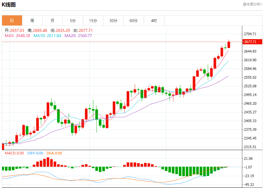 现货黄金:截止北京时间20:25,现货黄金上涨,现报2677.73,涨幅0.78%。纽市盘前,金价恢复积极交易,创下新的历史新高,等待进一步上涨至2700.00美元关口,这是我们的下一个主要目标,受到随机指标now提供的积极重叠信号的推动,以保持牛市趋势在即将到来的交易中有效和活跃,除非突破2650.00美元并保持在其下方。