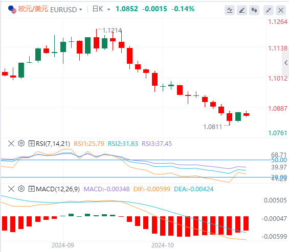 欧元/美元周五小幅回升,但连续第三周录得跌幅。该货币对周一早盘难以守住阵地,日内交投于1.0850附近小幅走低。