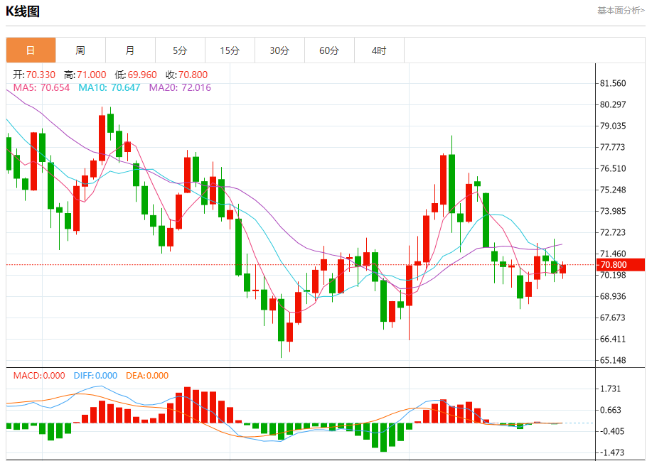 原油市场:截止北京时间20:23,美油上涨,现报70.800,涨幅0.87%。纽市盘前,原油价格正在测试70.58美元水平,等待突破该水平以确认今天剩余时间熊市波的延续,提醒您下一个目标位于68.65美元。