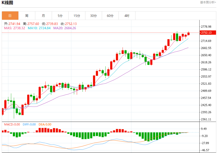 ①随着美国总统大选的临近,市场不确定性增加,黄金作为避险资产的吸引力持续上升。现货黄金价格在2750美元关口附近波动,日内最高触及2757.60美元,接近历史高点2758.37美元。市场普遍预期美联储在11月将小幅降息25个基点,这为黄金价格提供了支撑。