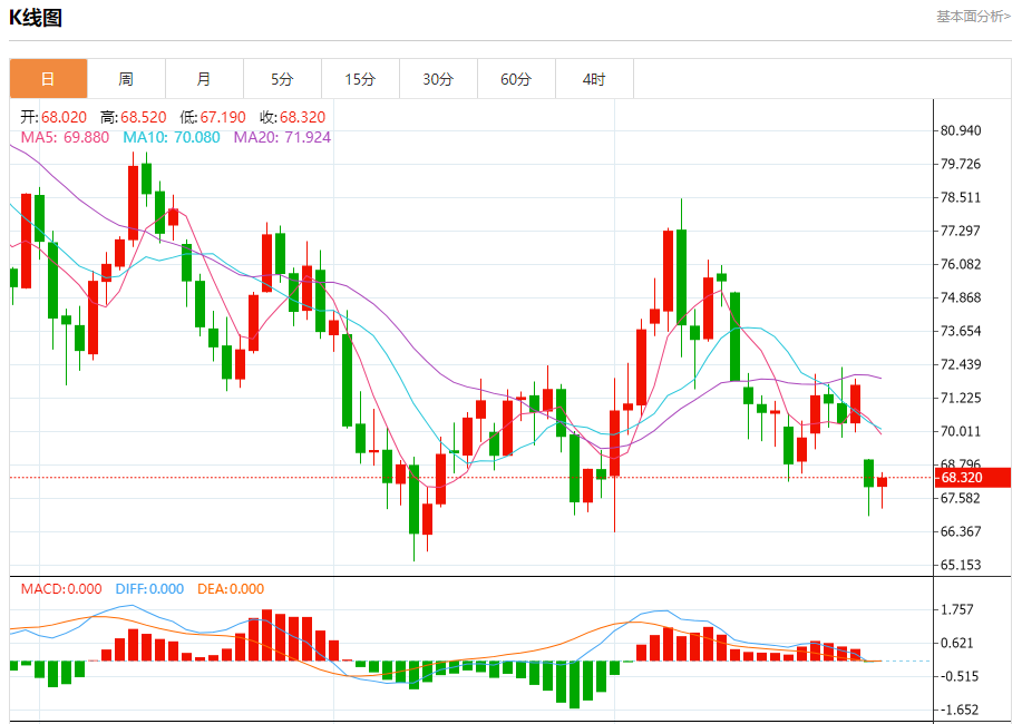 原油市场:截止北京时间20:23,美油上涨,现报68.330,涨幅1.50%。纽市盘前,原油价格停留在68.00美元下方,等待负面动机推动价格恢复预期的熊市趋势,其下一个目标位于67.00美元,随后是65.50美元,提醒您熊市的持续取决于68.65美元下方的价格稳定。