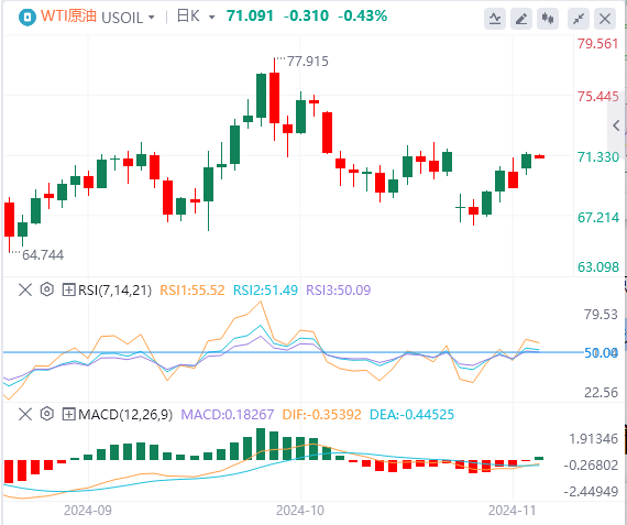 周二亚盘,原油交投71.09附近。欧佩克+推迟了原计划的增产以抑制供应过剩,这推动原油价格在本周初上涨了3%以上。伊朗和以色列的紧张局势加剧了原油期货本周的波动。