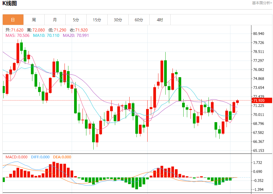 原油市场:截止北京时间21:20,美油上涨,现报71.900,涨幅0.60%。纽市盘前,原油价格自上午以来一直在窄幅波动,稳定在72.15美元附近,因此,今天的预期牛市趋势没有改变,其目标是从突破上述水平开始,以确认向73.70美元前进,作为下一个正站,提醒您牛市的持续取决于70.58美元以上的价格稳定性。