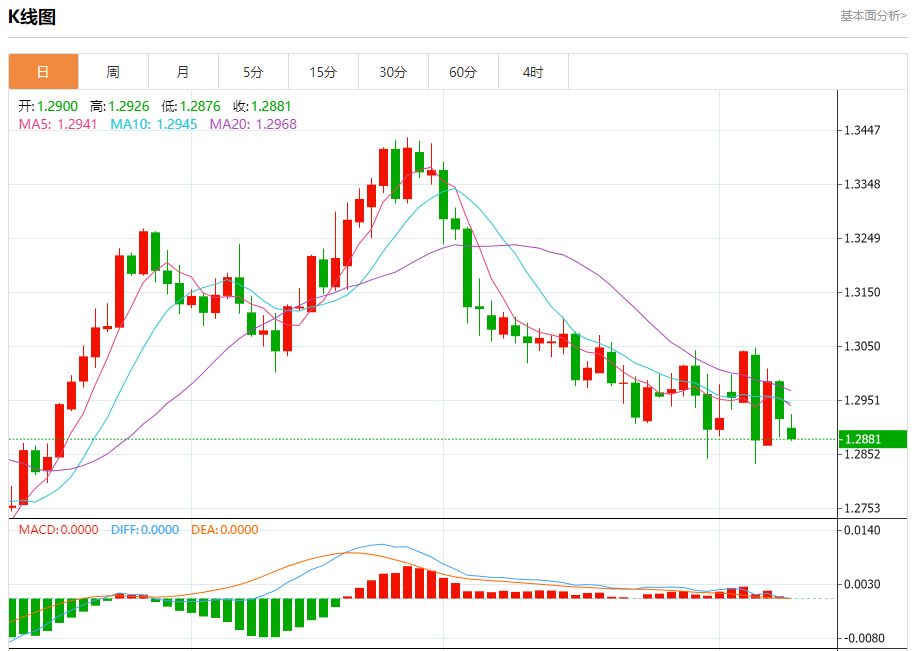 英镑/美元:截止北京时间21:12,英镑/美元下跌,现报1.2882,跌幅0.28%。纽市盘前,GBPUSD价格在上周五测试1.3000美元水平后明显向下反弹,因为它接近第一个等待的目标1.2866美元,我们预计将打破这一水平,以实现额外的熊市修正,目标是1.2735美元作为下一站。