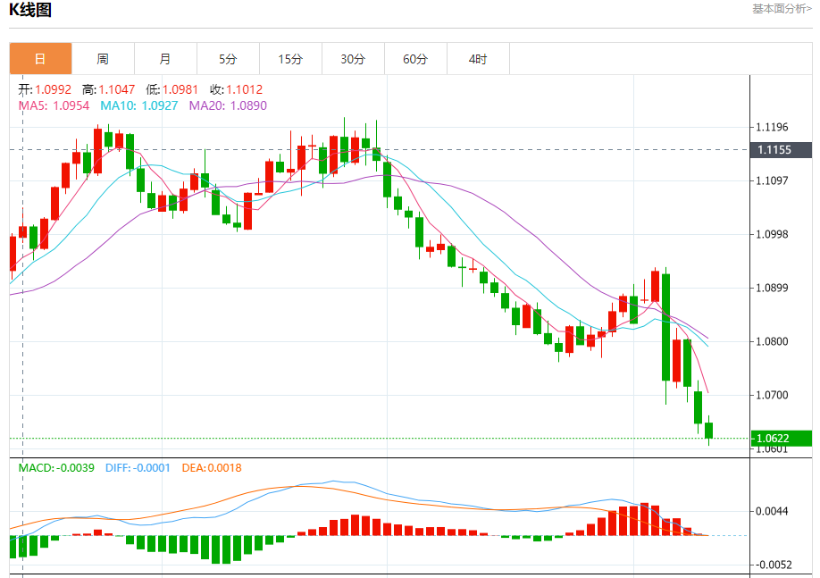 欧元/美元:截止北京时间21:20,欧元/美元下跌,现报1.0621,跌幅0.26%。纽市盘前,欧元兑美元价格继续下跌,不断接近1.0600美元的等待目标,我们预计将突破这一水平,为继续熊市开辟道路,目标是1.0510美元,随后是1.0450美元水平,作为下一个负站。