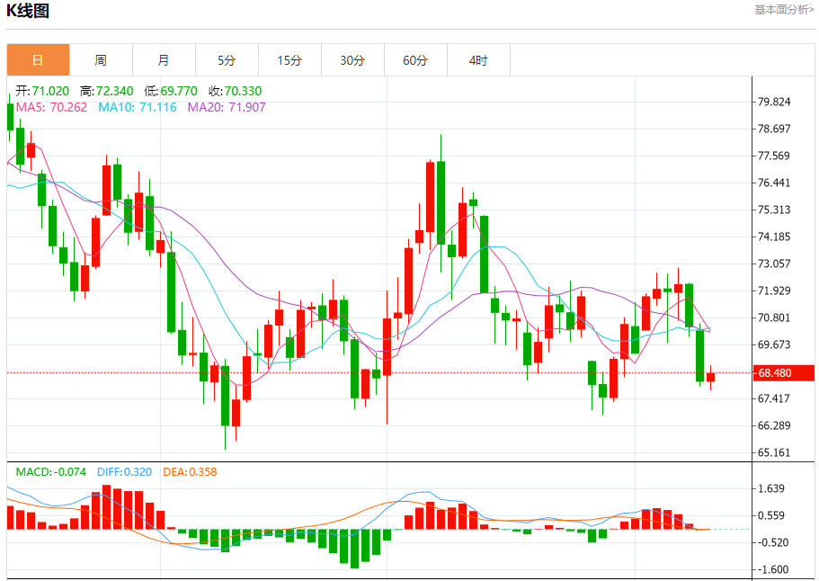 原油市场:截止北京时间21:20,美油上涨,现报68.490,涨幅0.66%。纽市盘前,原油价格显示出更多的看涨倾向,以测试关键阻力68.64美元,正如我们今天早上提到的,价格需要保持在这一水平以下,以保持今天的看跌趋势有效,因为突破这一水平将导致价格在盘中转向上涨和恢复,而预期熊市的下一个目标位于67.00美元,然后是65.50美元。