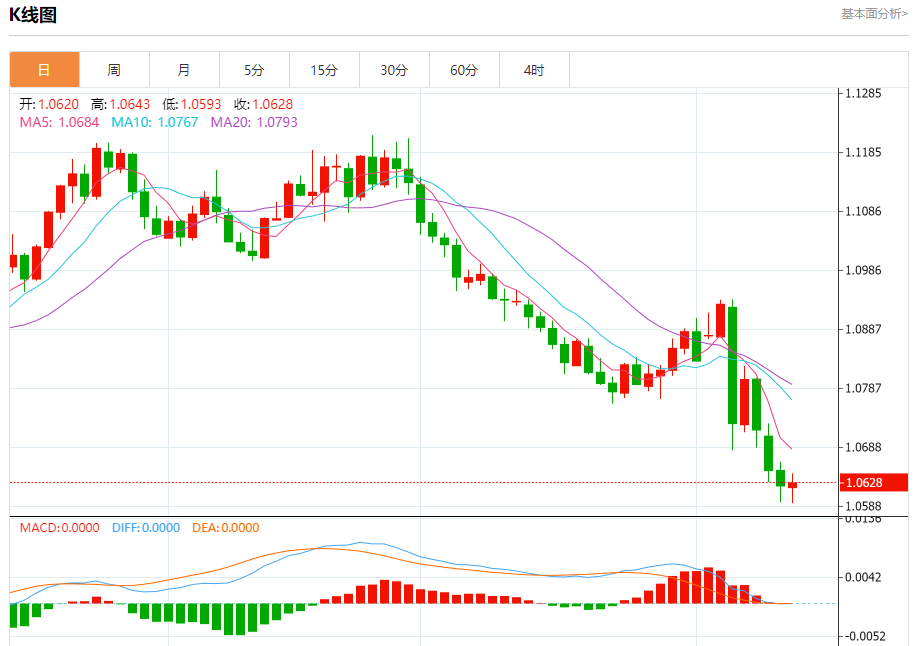 欧元/美元:截止北京时间21:20,欧元/美元上涨,现报1.0629,涨幅0.05%。纽市盘前,欧元兑美元价格显示新的负面交易开始施压于1.0600美元水平,等待突破该水平,以确认向1.0510美元的持续下跌,作为下一个主站。