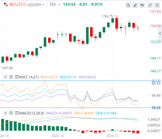 日本统计局宣布,10月份全国消费者价格指数(CPI)按年率上涨2.3%,低于9月份的2.5%。与此同时,路透社报道称,日本正在准备一项价值13.9万亿日元(897亿美元)的新刺激计划,旨在缓解物价上涨对家庭造成的财务压力。在周四下跌超过0.5%后,美元/日元周五早盘小幅走高,最后一次交易于155.00附近。