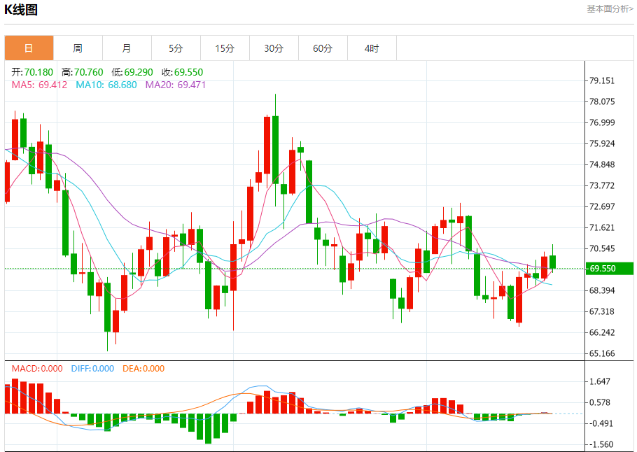 原油市场:截止北京时间21:20,美油下跌,现报69.57,跌幅0.76%。纽市盘前,原油价格首次突破70.58美元水平,并试图保持在该水平之上,加强了日内和短期继续上涨的预期,并为目标72.15美元区域开辟了道路,这代表着我们的下一个积极站。