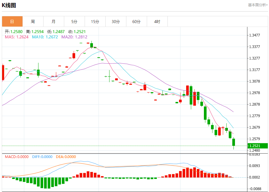 英镑/美元:截止北京时间21:20,英镑/美元下跌,现报1.2522,跌幅0.53%。纽市盘前,GBPUSD价格持续下跌,开始尝试突破1.2566美元水平,加强了在未来几个交易日继续看跌趋势的预期,为迈向下一个主要目标1.2465美元铺平了道路。