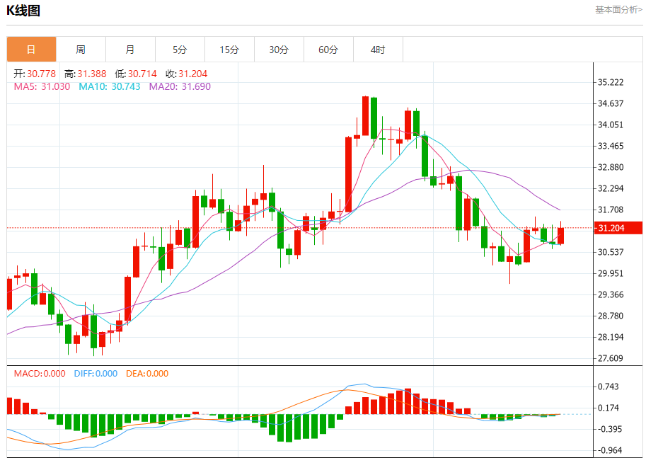 现货白银:截止北京时间21:20,现货白银上涨,现报31.22,涨幅1.45%。纽市盘前,白银价格以明确的积极性交易,以接近我们的第一个等待目标31.63美元,等待突破这一水平,以打开通往32.25美元和32.86美元的牛市,继续暗示今天的牛市趋势,这通过随机指标获得了良好的积极动机,提醒您保持在30.63美元以上以实现等待的目标是重要的。