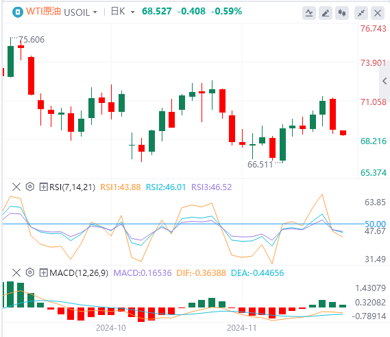 技术面:由于以色列和真主党之间可能停火,地缘政治溢价下降,价格回落。如果WTI原油保持在69.00美元水平下方,它将朝着67.00美元至67.50美元的支撑位前进。