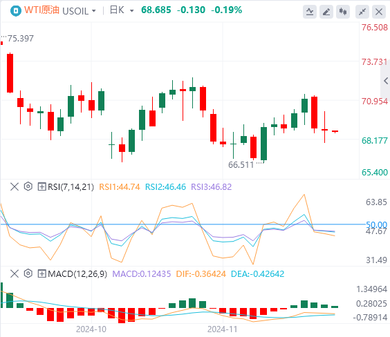 周三亚盘,原油交投68.68附近。WTI油价在美国石油行业前景不明朗和原油库存意外减少的情况下走高。美国当选总统唐纳德-特朗普表示,他将对所有从墨西哥和加拿大进入美国的产品征收25%的关税。如果特朗普兑现新承诺,对从这些国家进口的产品一律征收关税,美国石油行业或将面临难以预测的前景。