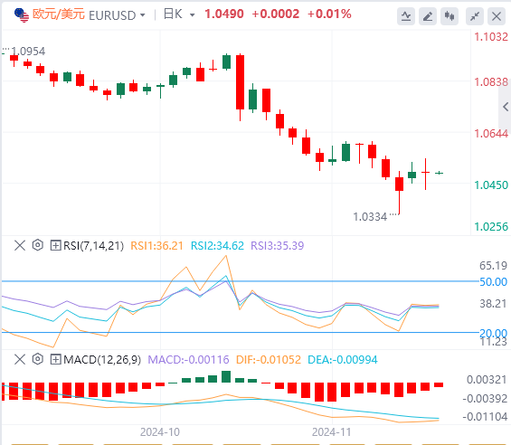 美元指数:截止发稿,美元指数徘徊在106.83附近。周二在关键经济数据发布后在107.00附近波动。与此同时,市场消化了当选总统唐纳德·特朗普对其三个最大的贸易伙伴征收关税的威胁,并在11月会议的联邦公开市场委员会(FOMC)会议纪要中寻找线索。技术面上,美元指数正试图回到阻力位107.10–107.30上方。如果这次尝试成功,美元指数将向下一个阻力位108.70–108.90移动。