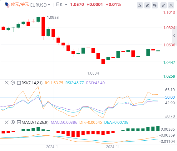 欧元/美元在上周五触及1.0600以上的三周来最高水平后,逆转方向,当日收于负值。该货币对持续走低,开始新的一轮下跌,目前交投于1.0550附近。本周晚些时候,欧洲央行(ECB)将召开今年最后一次政策会议。
