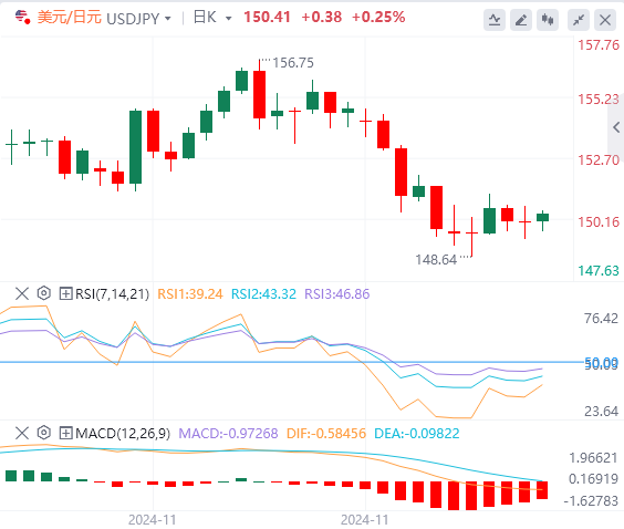 日本内阁府周一报告称,日本第三季度国内生产总值(GDP)年增长率为1.2%。这一数据好于市场预期的增长0.9%。美元/日元对这份报告没有作出任何反应,目前日内小幅走高至150.00以上。