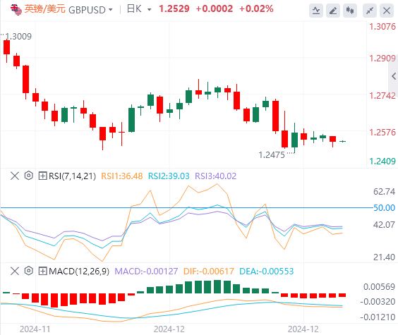 英镑:截止发稿,英镑/美元徘徊于1.2529附近。英镑/美元周四下跌,收报1.25527,跌幅0.23%。正在走向近期低点,因为交易员关注英国经济的疲软。最近的经济报告低于分析师的预期,这对英镑不利。技术面上,英镑/美元需要收于最近的支撑位1.2475–1.2490下方,才有机会在短期内获得额外的下行势头。