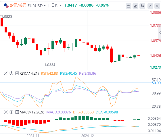 12月27日,北京时间周五亚市早盘,美元指数徘徊在108.08附近。周四,圣诞假期后市场交易清淡,美元指数继续在两年高位附近徘徊,最终收跌0.045%,报108.09。美债收益率小幅收跌,两年期美债收益率收报4.332%,10年期美债收益率收报4.582%。受避险需求的推动,现货黄金走高,一度逼近2640美元关口,最终收涨0.62%,报2633.62美元/盎司。现货白银震荡上行,最终收涨0.59%,报29.8美元/盎司。国际原油呈现倒V走势,因美元维持强势抵消了对中国额外财政刺激的希望。WTI原油未能站稳70关口,最终收跌0.54%,报69.54美元/桶;布伦特原油收涨0.38%,报72.86美元/桶。