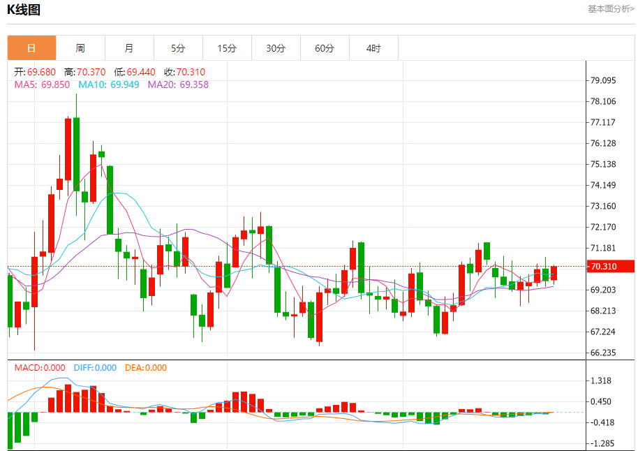 原油市场:截止北京时间21:20,美油上涨,现报70.31,涨幅1.01%。纽市盘前,原油价格试图突破70.58美元水平,但它明显向下反弹,可能会触及68.65美元附近的横盘区间支撑线,以保持横盘轨道在日内有效,等待超过上述水平之一,以明确检测下一个目标。