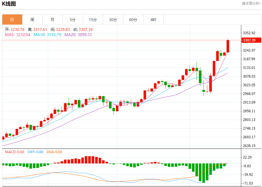 现货黄金:截止北京时间20:16,现货黄金上涨,现报3307.39,涨幅2.41%。纽市盘前,黄金价格在最近的盘中交易中扩大了涨幅,受短期形成的旗帜图案的影响,在最后一次交易中成功超越了3300美元的主要阻力,这是由主要看涨趋势的主导地位和短期次要趋势线支撑的,显示了这一趋势的强度。