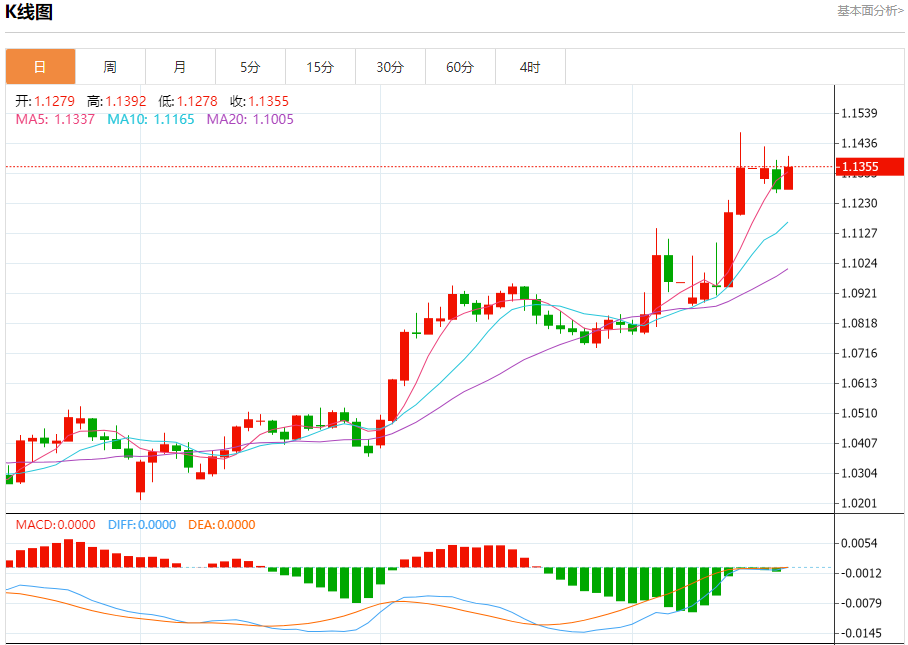 欧元/美元:截止北京时间20:16,欧元/美元上涨,现报1.1355,涨幅0.64%。纽市盘前,欧元兑美元价格在最后一个交易日下跌,短暂休息收集其最近上涨的收益,试图获得一些有助于其上涨的积极势头,并且(RSI)有积极的迹象。