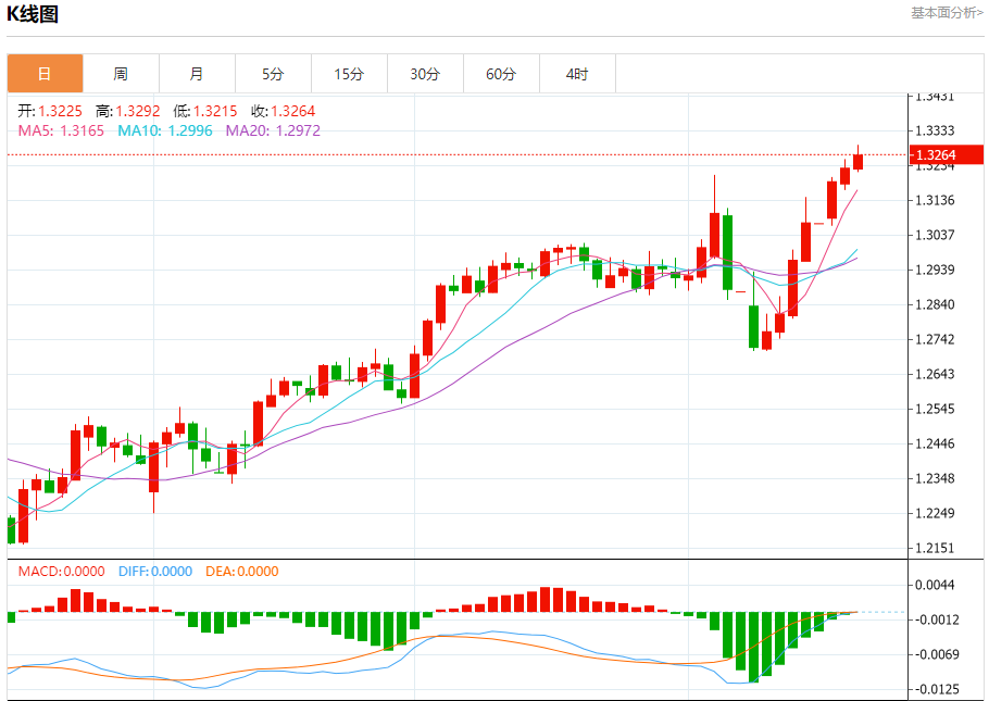 英镑/美元:截止北京时间20:16,英镑/美元上涨,现报1.3265,涨幅0.27%。纽市盘前,GBPUSD的价格在最近的盘中交易中上涨,此前它成功地通过卸载(RSI)上出现的一些超买条件获得了积极的动力,现在,我们见证了积极的重叠信号的开始,在1.3200水平以上的稳定交易中,受到短期强劲牛市的支持。