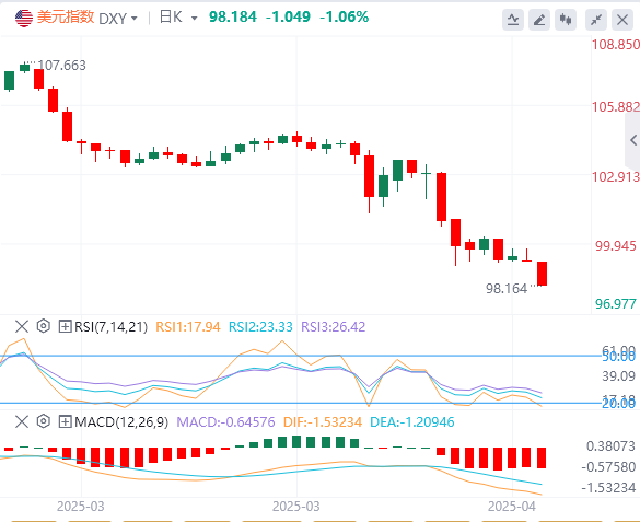 美指现周线级别下破行情,未能收复此处将保持颓势。截至目前,美元报价98.18。