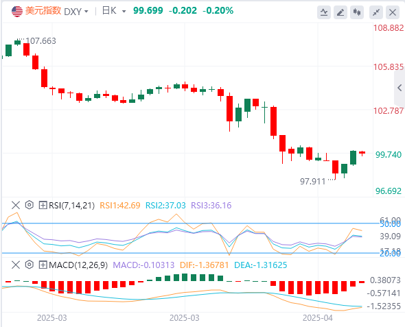 周三,随着特朗普和贝森特在贸易谈判方面释放乐 观信号,美元指数延续反弹,截至目前,美元报价99.69。