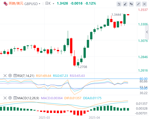 欧元:截止发稿,欧元/美元徘徊于1.1403附近。由于对欧洲央行(ECB)在6月份进一步降息的押注上升,欧元(EUR)兑美元(USD)走弱。 投资者在等待周五即将发布的备受关注的美国非农就业数据(NFP)之前,准备迎接美国贸易政策的进一步发展。技术面上,如果欧元/美元收于 1.1400 水平上方,它将朝着最近的阻力位前进,该阻力位位于 1.1450 – 1.1470 区间。